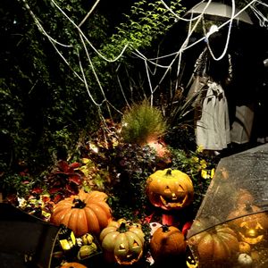 Trick or Treat🍭 ハロウィンナイト🎃Now 🌹☔雨の中… 凄い人で…歩けません…💦 📲夜撮るの初めてだし… 幻想的な薔薇チャン撮れなくて… ゴメンチャイ…師匠に笑われた…💧