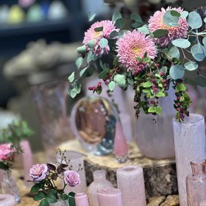 ①マツムシソウ スカビオサ 今日のお花10月28日 ②ツタ ③☔雨の中〜オレンジ色の薔薇 ④🤍白い花のコーナー 白薔薇・白ブッドレア 白秋明菊・白タチイアオイ ⑤第2回・講師senさんの秋薔薇撮影会2025 📸📲 ホンノ少し…☔。