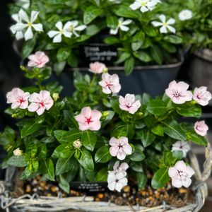 〜今日の庭〜 北島園芸の*ビンカ* 昨年お迎えした中から ホワイトにグリーンんのグラデーションが入った シンプルな子達を揃えました🤍🤍🤍 ①② *フェアリーミントシリーズ* ③ *しらゆきひめ* *サマーミント* ④ 玄関先は、西陽が当たらなく 風通しが良い場所♪♪ クリスマスローズがいつまでも居ます。 ⑤ 商品ラベル 今年は室内な入れて冬越しに挑戦してみようかなぁ♪♪