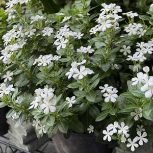 〜今日の庭〜 玄関前 ① *夏色クレヨン 日々草 しろ* 小さな花を いっぱい咲かせてる🤍 初めてお世話してるけど すごく可愛い❤︎ ②③ ←隣りは、ビンカしらゆきひめ ↑上は、 ビンカ サマーミント ④⑤ *ヨウラクタマアジサイ* 瓔珞玉が弾け 蕾が出て ようやく花が咲き出した🤍🩵