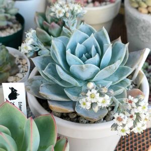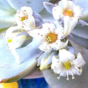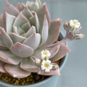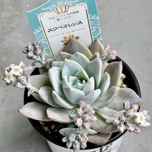 おはようございます😃🌤 スアベオレンス(甘い香りの意味)🩵 六年目で初めて、待望の花が咲きましたあ🎶甘~い香りクンクン、確かにスイート😍エケベリアのようなセダム、エレガント過ぎる🎶