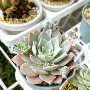 ポチッていた万象「大宝」「丹頂」が届き、植え付けました。 特に「大宝」がいい✨ これからの膨らみに期待。 スアベオレンス。 セダムというのが信じられない苗。 今の夏色もいいんですが、冬の淡い桃色もまた素晴らしい😌 長年追い求め、昨年秋にようやく手に入れました😏 まだ子株はありませんが、いつかは…。
