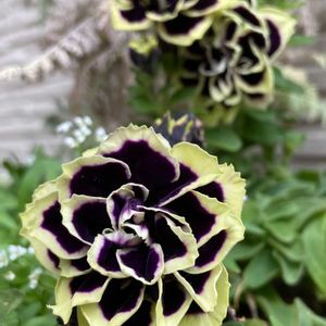 🏷️BLACK FRIDAYゴッコ 🏷️和菓子の日 参加します ペチュニア 花衣 黒真珠🌸 黒いお花に白い覆輪 かっちょいいですね〜🖤🤍 ちなみに、黒いペチュニアの花言葉は 「危険な愛」だそうです🤭 女王様キュピと生八ツ橋ピータンを添えて💕