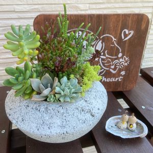 🏷石の日 1枚目 2枚目 KOHちゃんのオジゾータン鉢に武蔵野✨ 頭が出現✨🤣🤣🤣 オジゾータンもびっくりしてる(笑) 🏷つぶつぶ倶楽部 🏷石の日 3枚目 4枚目 これまたKOHちゃんのイシコロタン鉢に だるスプのつぶつぶ💕 何回も✂️して、強欲に増産中(笑) 5枚目✨ みたりんちゃんからSurprise🎁✨ キターーー(❤∀❤)ーーー!!! さすがみたりん画伯✨ チキンやピータン、💩おぼうぼ博士ピータン、私の大好きな猫スタンプまで描いてくれてるぅ〜🤣🤣🤣💕 リメ鉢には🩷💩で私の名前入り💕 売り物みたいな椅子は、旦那様とみたりんちゃんの共同作品🤩🤩🤩 お立ち台も可愛すぎ🤣🤣🤣💕 🍉の☂に、大好きなおやつまで💕 本当にいつも(ꕤ ॑꒳ ॑*)♡ぁㇼゕ̎と੭່ Շ”ਭ🍀 ̖́- 22日のニャンニャン祭りで、 また再度💕煉瓦と鉢はお披露目予定✨