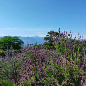 向こうに小さく富士山も 見える春の穏やかな日 いっぱいのラベンダーが 咲いてました♡