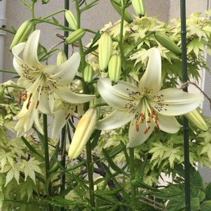 1️⃣スカシ百合 2️⃣斑入りベロニカ・シャーロット 白いお花です🤍 3️⃣4️⃣ヒューケラ🌿🌿🌿 🏷月曜日にビタミンカラー 🏷2のつく日は斑入りの日 参加させて頂きます🥰