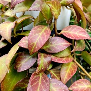 紅葉する観葉植物、ホヤオブスクラが紅葉してきました。一時期調子悪くなったけど、春に植え替えて外に出してたらまた元気になって感じです。