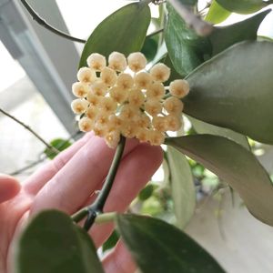 ホヤ オブスクラ咲きました〜😺✨ ほぼ、ホヤ クローニアナとそっくりな、ややベージュより?👀 香りはラクノーサ系のグリーンフローラルで、クローニアナの強香を少し柔らかくしたような? ワサワサと茂っても、花がついたのは1メートル近く伸びたつるだけでした🍀 他のホヤにも言えますが、花を観たいなら土を浅めにして極力コンパクトに育てたら良かったな~と、今更少し後悔してます。 来年は更に巨大化するんじゃ😦💦と、ちょっとビクビク(笑) 我が家のスタイルの良さ№1ホヤ マチルダのマチ子さんも、つるが伸びて伸びて🤭更に花座がい〜っぱい🦸✨ ですが、開花は秋になりそうです💓