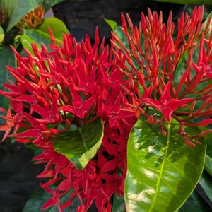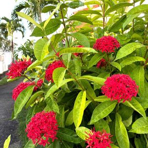 【山丹花】《アカネ科》 花言葉 「喜び」「謹厳」「張り切る」「可憐」 「熱き思い」「神様の贈り物」 別名 イクソラ 学名の Ixora は サンスクリット語で 「シバ神」の意味 “Iswara” という言葉が 語源になっている。 シバ神への供花として 用いたことに由来している。 サンタンカはサンダンカともいわれ、オオゴチョウ、デイゴとともに沖縄の三大花として知られています