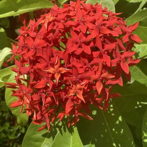The 沖縄の木 サンタンカ アカネ科の低木 こちらは花が大きいサンタンカ スーパーキングだと思います……🤔 ほんとうに沖縄に似合う鮮やかな花ですネ