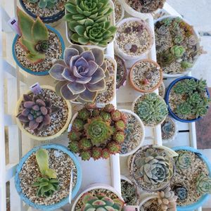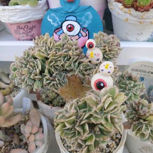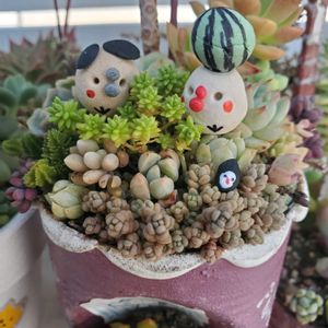 とっとり花回廊の多肉寄せ植えWS行って来ました😄 鉢持ち込みのWSだったので自作のリメ鉢にモリモリ詰め込みましたよ✨ このWSを教えて頂いたGSの花友さんにも初対面👀✨顔知らないのにね、GSでの投稿からこの方かな🤔と声をかけたら当たり🎯逢えてお話出来て嬉しかったです😆⤴️💓 ②🏷️毎月13日と14日は葉挿しの日🌿 なかなか大きくならなかったサブセシリスがこの夏めっちゃ大きくなりました🎵 確か…3年くらいかかってこのサイズなんだけど💦 ③KOWサン♪月の雫サン♪のハロウィンセットGET出来ました❤️ 鉢もピックも多肉ちゃんもみんなめっちゃ可愛い~🤩 ④購入記録🌿 ハニーミントさんの苗ポチリました🎶 6苗と土と肥料のセット 立田錦と斑入りリトルゼム 多肉狩りの予定もあるのに…我慢出来なくてポチリ💦 ⑤パンクチュラータのお花が咲いてました✨でも葉の色と同化してて…なかなか気が付かなかった…🤣