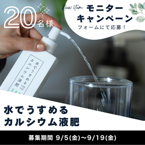 🌱🪴🌿モニターキャンペーン🌿🪴🌱 新商品「水でうすめるカルシウム液肥」 のモニターになってくださる方を大募集! 乾燥に強く、病害虫に強く育てるなら、自然暮らしのカルシウム液肥!🌞 1プッシュして1Lの水でうすめるだけ✨簡単便利♪ 酢酸配合で乾燥耐性をさらにアップ🌟土壌中の土壌中の病害虫の予防やカビの抑制に効果があります! ☆オンラインショップではAmazon、楽天市場、公式サイトで販売開始しております ✅応募方法  ̄ ̄ ̄ ̄ ̄ ̄ ① URLより応募フォームへ ※PCの方は下記URLよりアクセス↓ https://shizengurashi.jp/pages/calcium_monitor_campaign?openExternalBrowser=1 ② フォームに入力して送信 ⌚応募期間  ̄ ̄ ̄ ̄ ̄ ̄ 2025年9月5日(金)~19日(金) 🎯当選者数  ̄ ̄ ̄ ̄ ̄ ̄ 20名様 🎁モニター商品  ̄ ̄ ̄ ̄ ̄ ̄ ̄ ̄ 水でうすめるカルシウム液肥 [商品の特長] ✅細胞を固くして乾燥と病気に強い株に!水でうすめるカルシウム液肥 ✅植物を硬く、引き締まった株に ✅酢酸を配合し、さらに乾燥耐性をアップ、土壌中の病害虫の予防やカビの抑制に効果あり ✅水1Lに対してワンプッシュするだけ!簡単計量で初心者も安心 ✅窒素、リン酸、カリウムを含まず、過剰に栄養を与えない ✅観葉植物、多肉植物、塊根植物、草花、花木果樹、野菜など様々な植物に使える ✅エケベリア、セダム、ハオルチア、サボテン、アガベ等の乾燥地帯の植物が特におすすめ ✅トマトやイチゴなど、野菜の尻腐れ対策もOK ✅シンプル&おしゃれなデザインでインテリアの邪魔をしない 《成分》:カルシウム12%、マンガン0.1%、ホウ素0.3% + 酢酸 💡モニター方法  ̄ ̄ ̄ ̄ ̄ ̄ ̄ ̄ 商品到着後、3週間を目安に商品を使用していただき、後日お送りする使用感のアンケートにご回答ください。 皆さまのたくさんのご応募お待ちしております! ≪ご注意事項≫ ・日本国内にお住まいの方のご応募に限らせていただきます ・報酬等は発生いたしません ・キャンペーン当選者様がご投稿いただいた記事を、弊社SNS/WEB/メルマガ等に二次利用させていただく場合がございます ・賞品の譲渡・転売・質入等は禁止します ・選考経過および結果に関するお問い合わせには一切お答えできません ・商品発送やアンケート送信のためにご連絡いただいた個人情報はそれ以外の目的で使用しません