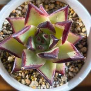 赤いエッジがかわいいエケベリア♥️ 🌵ピンクチップス はーいo<*´ω`*>oビョーン 徒長してます🖐 このタイプは、春にチョンパですね✂️ 葉挿しっ子も出てきたし かわいい子は増やすぞ🌱🌱🌱