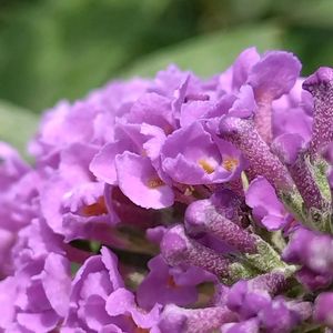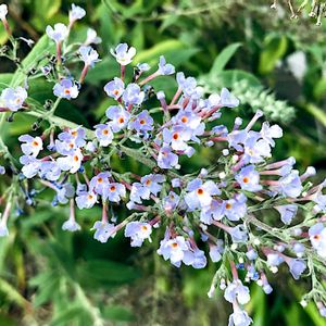 (PW)ブッドレア・パグスターのアメジスト 別名 フサフジウツギ、バタフライブッシュ(蝶が集まるということで) 丈は30cm 花の部分は15cm 最終的には樹高60cm、樹幅60cmになるそうです。 新枝咲きで秋まで繰り返し咲くそう😚 ほんのり良い香り、パッと思ったのがヒヤシンスの香り🪻 色は他にブルー、ピンク、ホワイトも販売されてました。 ベビー苗で先月の6月中旬に届いて今月開花しました😊(来年まで待つのかなと思ってました♪) 届いて1週間で下の葉が黄色くなっていき、ストレスかと思ってましたが原因は葉ダニ(多分)で2週間位かけて退治しました💦 いずれは地植えしたいのですが、西日に耐えてくれるかな。。。 ③7月20日のつぼみ