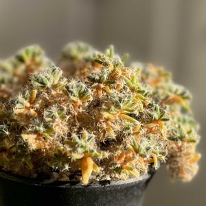 勝手にアフリカ盆栽。 トリコディアデマ デンサム 紫晃星 ①生猫鉢に植えてみた。 猫顔アップ気味に。 ②足元を針金でまいて、 癒着して塊根を作る。 盆栽の作り方みたいだな。 トリコディアデマ プレボスム 姫紅小松 以前アップした子。 ③ジミーに成長している。 ④かわいいまん丸塊根がお気に入り。この部分は 根上げなので、霧吹きマメに。 ⑤2人揃って 記念撮影 ハイ❣️パシャり。 Σp📷ω・´)