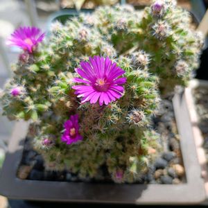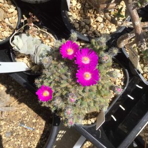 ①~③紫晃星 Trichodiadema densum メセンの仲間。 塊根はまだまだ。今は枝を括って癒着を待ってるとこ。 ( ́•ૢ⌔•ૢ ̀)♡沢山お花が咲いた。 猫鉢に花冠❣️嬉しすぎ🥰 ④木瓜 越の輝 パッカーン🌜🌚🌛 ⑤一昨年 実家近くの道の駅で 配布してて頂いてきた、咲き分けの花桃のちび苗。 \(*°∀°*)/ 1つ つぼみたんミッケ✨️