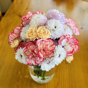 ブーケ💐 お正月用のお花 まだまだ元気に咲いてます😀 菊、カーネーションって長持ちですね〜🎶もうすぐ1か月‼︎ (クリザールを使用)