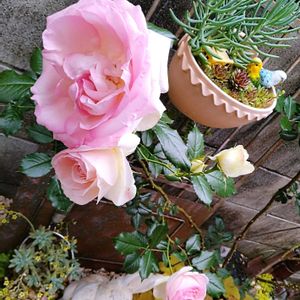 絶好の「植え付け日」で、やっとトマトやナスを植えられました 一緒にバジルやマリーゴールドを植え、バラの苗待ちの場所にゼラニウムを ウサギ(ジャンプしたら容易に入れる)対策にワイヤーを張らないといけないけれど 2枚目: ペチュニア3種類の寄せ植え 中心の「草」の名前がわからない 3枚目: エステートセールで見つけた「鳥かご」風のプランツ置き もう少し丁寧に洗わないといけない さぁ 何を入れようか 4枚目: 友人のレイズドベッド(デッキの上にある)にいつのまにか赤ちゃんうさぎが! わかりにくいけれど三匹います しばらくこのレイズドベッドは「賃貸」物件化 5枚目:白鳥も卵が孵ったようで、子白鳥が8羽も🦢 無事に大きくなって欲しい