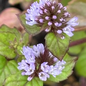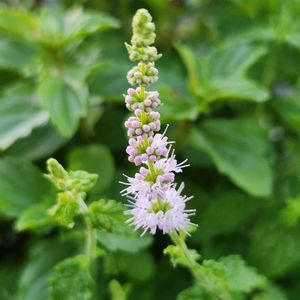 ①花友さんから頂いた ストロベリーミントが暑さにも負けずかわいいお花が咲かせていました。 名前通りイチゴの甘い香りのする葉っぱです🍓 ②実家から種を採るため持ち帰った桜吹雪 今から咲くのかなぁ⁉️ ウチの吹雪の松の種はもうカットし終えました。