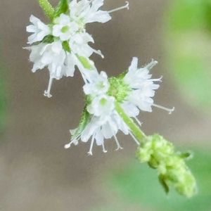 🌿ストロベリーミント🍓🌿 ①蕊が長くて、こんなに可愛い白い花なのに… ②鉢からニョキニョキ噴き出すように伸びて、まとまりが付かなくなってます 庭があれば、自由に伸びるのにネ 甘く爽やかな香り〜🌿🌿🌿 🏷️白い水曜日♡