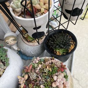 先週お迎えした四馬路を植え替えようと、鉢から出してみてびっくり。 ふかふか花の土に植えられていて、1週間経っても土が乾いていませんでしたー。 とは言え元のビニールポットに戻すこともできず。そのまま大きめの鉢に入れようかと思ったところ、なんか、いっぱい株が分かれる!? しかも葉もポロポロたくさん取れるし😅 シノクラッスラらしいですね。 急ぎ素焼き鉢に入れちゃいましたが、別の鉢がよかったかな。様子見てまた考えます。 取り敢えず分けられるだけ分けて、夏に向けて形と根を整えて行こうかと思います。 さて、大量の葉挿しはどうしよう(笑) ①基本ストック鉢。 やっぱりマットな葉がカッコイイ。 ②鉢から出してみてびっくりしたとこ(笑) ③多肉土に植えました。 花や野菜の土のほうが良かったのかな。 ④植え替え前の姿です。