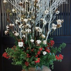 9月に作ったオレンジとクリスマスローズを飾ったグリーンリース もうすっかり枯れてしまいましたがX'masリースに仕立て直してみました。コットンは自家栽培のものを飾りました。 いずれ自然に返るものでも、植物とのお付き合いはできるだけ長く……