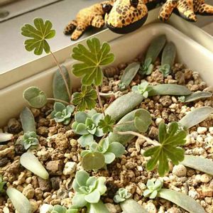 1枚目は、1年半前のまだ元気だった頃の株 今年の寒波で凍傷にあい、瀕死でしたが、2枚目のように、わずかに生き延びて根付く事ができました✨️ 3枚目は株分けした子🌱 今年の春で一気に大きくなりました✨️