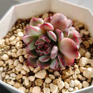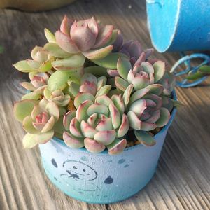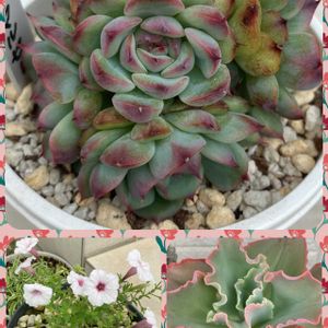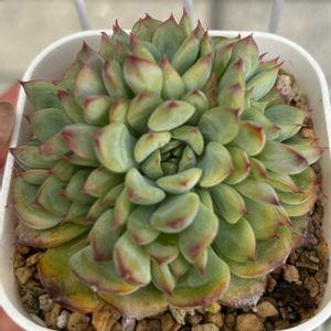 縁取りが色づいてるエケベリアさんです♪ 1年を通して水やりが少なかったので葉数が減りました💦来年の春からはもう少し水やりを上手く増やして育てようと思います(。•̀ᴗ-)✧
