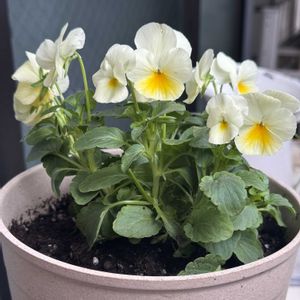 【2025秋冬メモ 3】 中輪パンジー「クリーミーレモン」 2年続けて人気のフリル咲き高級系「エッグタルト」を育てて大満足のパフォーマンスではあったけどことしの東京は秋が少し速く(本来これがふつうか💦)朝晩は冷えてます。 早いうちから慣れてもらって冬本番に備えたいのでHCで初めて見たこの子を連れ帰りました。 パンジービオラの購入基準はアンティーク・ニュアンス系の色ではなく💦ベインとブロッチが目立たない、濃い色ではないもの💦💦この子はベインとブロッチが黄色でこわくなさそうだったのが決め手になりました。お値段も300円台で「よく咲くスミレ」よりちょっと高いくらい。 植えてから鉢小さかったかも…となってます💦かわいいからいいや🤣 連休にホームセンター行ったらボンザマーガレットがようやく並んでました。もうちょっと待ったらPWさんのもくるかな…夏越しきびしいからお迎えするか悩んでます