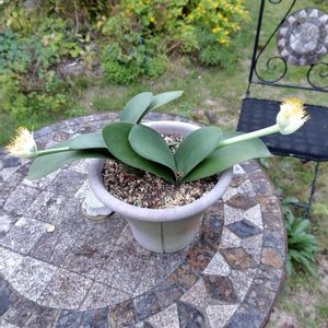 かなり寂しいお姿だったこちら😓 50円だったから、ダメ元でお迎え。 涼しくなってきて、細葉が元気になって来たと思ってたら、、、 只今、3輪ほど開花中✨ なんとも柔らかい印象の可愛い子🩷