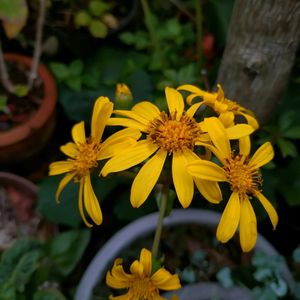 おはようございます♪ 花友さんに苗を頂いてか4年目のユリオプスデージー💛🧡💛 今年も咲いてくれました😊
