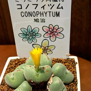 コノフィツム 鳩笛🕊️🌵 黄色の花が咲きそうです。 無事に開きますよ〜に 🌼🙏🙇🙏🌼♥