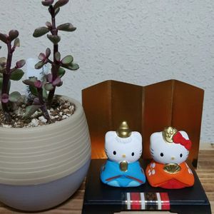 久しぶりの投稿です(๑•᎑•๑)♬*゜ 🏷ニャンニャン祭り(ΦωΦ) もうすぐひな祭りですね🎎 お雛様キティちゃんで参加しま~す(=^・^=)💕🎎 moruさんのインスタ販売でニット鉢ゲットしました٩(๑> ₃ <)۶♥ 多肉はゴールデングロウ♥ 先月の末からココが歩けなくなって介護してました🤣 今は立ったり歩けるようになって来たけど 先週も体調を壊して大変でした💦 今はだいぶ回復して来ましたが ご飯をあげても何をしてあげても吠えてばかりで💧 どこか痛いのか?1ヶ月、唸ったり怒ってばかりで💦 歯痒くて、介護にも疲れてもう限界って思ったくらいストレス溜まってしまって💦 今は撫でたり抱っこも出来ないんです🥲 何も出来ない事に切なくて辛くて何度も泣いていました😭 そんな時に思いっきり多肉事して癒やされた꒰⑅ᵕ༚ᵕ꒱˖♡ やりだすと止まらなくなるくらい楽しかった😂