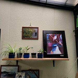 昨夜からの雷雨や大風などもあって、今年種から育てた、ハマボウやデンドロビウム、オリズルランなどの小さな鉢を 載せるサンルームの壁に棚を作りました。