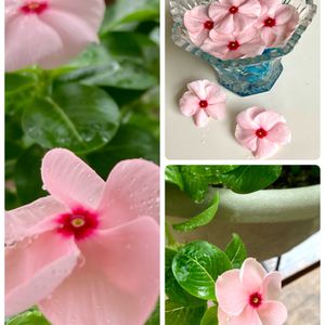 画像1/日々草 昨日からの雨で日々草の花が落ちていたので水に浮かべてみました〜 画像2/大葉の花&ヤマトシジミ 大葉の花にヤマトシジミが… 画像3/ハイビスカス 今日のハイビスカスは虫喰いの穴が無く咲いてます♪ 画像4/オリズルラン (右上)5月25日の画像 小さかったので苔玉で育ててたけど、根が苔玉から飛び出して成長してきたので夏頃、土に植えました。 右、左にランナーを伸ばして元気に成長してます。 今日は花も咲いてました♪ 画像5/今日の収穫