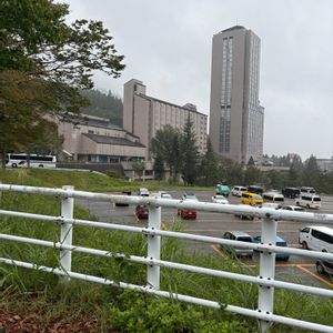 新潟県南魚沼郡湯沢は雨 ホテルのレンタル傘を借りて敷地内を歩きました オーナー用ホテル棟もあるし広い 流石スキー場で2機のリフトもあります 今日は越後三山只見国定公園 八海山 上信越高原国立公園横手山の予定です 8:15バスで出発する時は雨あがりました