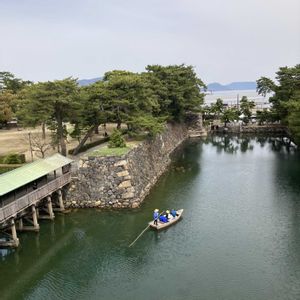 史跡高松城跡玉藻公園 1️⃣天守台からの景色 左下・鞘橋(さやばし) 海城である高松城のお堀は、海水を引いているので鯛が泳いでいます🐟 2️⃣天守台 展望デッキ 3️⃣濃いピンク色の可愛い桜のお花 「エレガンスみゆき」と買いてありました🌸 初めて見ました😊 4️⃣北の丸 月見櫓 5️⃣左上・桜御門 下・鞘橋(さやばし)