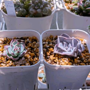 先日お迎えした6つのチビチビ多肉さん。毎日ひとつずつUPして きょうが最後です😊🎶 ① 🌱アルニエリアーナ🌱 名札には、こう書いてあるのですが… 🌱マルニエリアナ🌱ですよね🤔 うちわのような形の葉っぱ、フチには赤いラインがあります。 ベル型のピンクのお花が咲くようですね💓 元気に育ってほしいです🥰💖 ② ①は、後列右