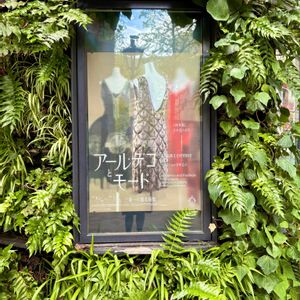 三菱一号館美術館の アールデコとモード展に行って来ました そのポスターがシダの額縁で、美しく飾られて…🍃 モードの花たちに魅了され、その時代を想像し、ひととき優雅な気分を味わいました✨ 中庭の薔薇🌹が控えめに咲き、都会の美しいオアシスとなっています