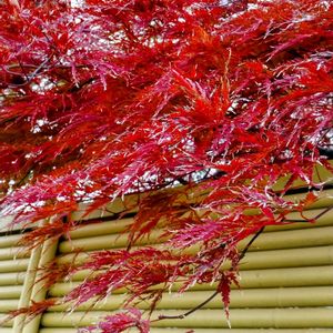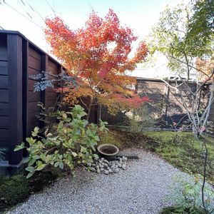 こんにちは 我が家の垂れモミジ 真っ赤っかです 酷暑で葉が少し傷んでいますが 真っ赤になると綺麗ですね 外は風が強くて 寒い 北風が吹く寒い冬がやってきました 坪庭の垂れモミジが石臼に落ちていて綺麗でした 皆様 風邪をひかれないように暖かくしてお過ごしくださいね