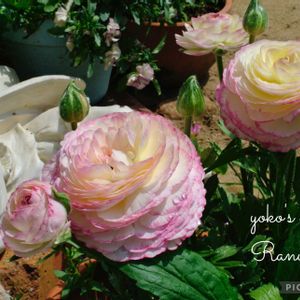こんにちはー·͜·ᰔᩚ お庭のラナンキュラスが可愛いー😍 2年目です(*´˘`*)♡