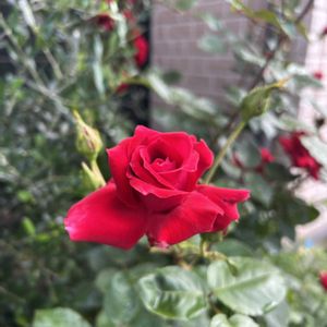 おはようございます♪ せっかくの土日が雨です☔ 庭パトにて。。。 うちの赤いバラが今年はたくさん花を咲かせてくれました🌹 裏の畑のおばさんから何年も前に移植してもらったんですがここまで咲いたのは今年初かも❣️ 嬉しいなー💕 名前はまったくわからないですがビロードのような美しい花びらです🌹