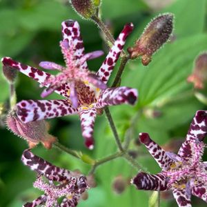 玄関先の山野草坪庭に植えているホトトギス。 丈を低くする為に摘芯していたので、やっと咲き始めました。 30cm〜40cmの高さで纏まり、綺麗に咲いています。 片隅ではミズヒキも、ひっそりと咲いてるいます。