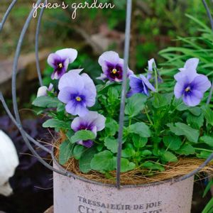 おはようございます·͜·ᰔᩚ 今日は雨が降りそうですね。。。 お庭から。 タイガーアイ、オステオ3D、シクラメン、などなどのバスケット植え🧺 今日は昨日買ったバスケットにペチュニアを植える予定です。
