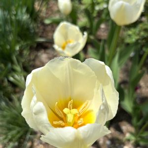 お庭パトロール チューリップが咲きました〜🌷 お天気良いのでパッと花開いて可愛い〜❤︎