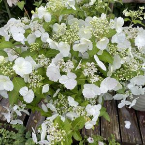 こんばんは 今日は凄い雨☔ 土砂降りでした 雷⚡︎もゴロゴロ 朝はまだ小雨だったので 庭をパトロール ①②③紫陽花3種咲いていました 今から紫陽花が楽しみな季節でも雨は嫌です ④零れ種から毎年咲いてくれる マトリカリアダブルラテ とっても可愛いです ⑤モンステモン 去年植えた宿根草です多分名前これだったと思うけど⁇です