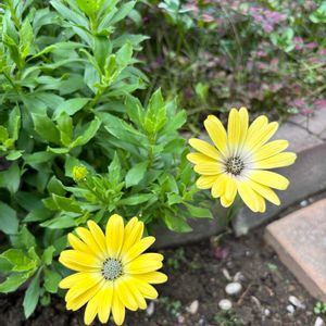 本日のお庭パトロール! 今日はどんより曇り空ですが…☁️ レモン色のオステオスペルマム咲いてました〜🍋