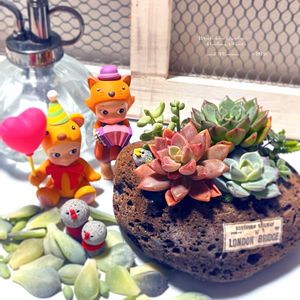 石の日🏷️ 公式では今日は 「いい石の日」だそうです それから エンジェルや天使、妖精などで投稿する エンジェルデー🏷️ が先月誕生しました あなたの天使のような存在👼でもOKだそうです 以前マルシェで買った軽石鉢の 多肉が伸び伸び〜になっていたので 抜いて新しく寄せ植えしました 抜いた多肉は薄氷? 本当に長くなっていたので 葉っぱが沢山取れました これはまた葉挿しにしようと思います🍃 3pic目は いい石の日なので 何か面白い石はないかな?と 過去画像を見ておりましたら なばなの里のこんな写真がありました 花壇に沿った道を歩いていたら こんな記念のモニュメントがありました 100歳を越した双子の金さん銀さんが 実際に植樹のイベントで使われた ショベルだそうですが 知らずに触ってみたら 抜けたのでびっくりしました😳 おまけにある時間になると 従業員の方が 抜いて仕舞うみたいで 後で戻って行ったら無くなっていたので 盗られた⁉️と思って2度びっくりしました😳 今もこのモニュメントあるのかな〜🥇🥈✨