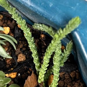 また雪が降ったなぁ〜お庭真っ白✨ まだ根雪ではないはず… これからの投稿は室内多肉が多くなりそうです❄️ ①② ドルフィンフラッシュ(セネシオ属)のお花が咲きました✨まだ蕾もあります👍 でもこれ明らかに徒長してますよね〜 元々レスキュー苗なので正解がわかりません🤗 木立化多肉が好きなので2月にお持ち帰り✨ すぐに挿し木にしてこのワチャワチャ状態… 調べてもあまり出てこないのです🧐 ③ 寄せ植えの若緑(クラッスラ属)✨ 階段を通るたびに何だか不思議な匂いがするとは思っていましたが水やりする時に判明!そうだった〜 小さなお花が咲いていました🤗 ④ ふと比べてみました🤩 寄せ植えの若緑はずっと窓際で黄色に近い💛 窓際棚にいるのは緑💚 ⑤ 若緑のタグがあるのでここにゴーラム適当に挿したんだ! シュールな寄せ植えになってる🐙🤣面白い 🏷棒の日に参加します✨