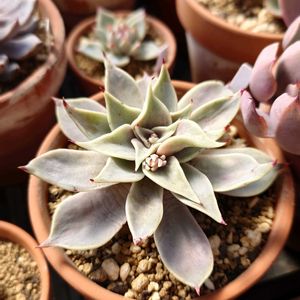 エケベリア オリジナル交配種 Echeveria OriginalHybrid おばんです🤗 初期投資・・・ やっぱりお金がかかっちゃいますよね😅 なんとか安く済ませたいトコですが 安物買いの銭失いにはなりたくないので そこそこ値がかかってしまいます🙄 まぁ、良い物が出来れば 多少の費用は仕方ないか🤔 さて、今宵はオリジナル交配種を。 自分の交配種では珍しく白系です そして相変わらず爪有り(笑) こいつは〜大型化しそうな気配がプンプンしますよ〜😍 楽しみですね